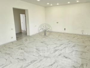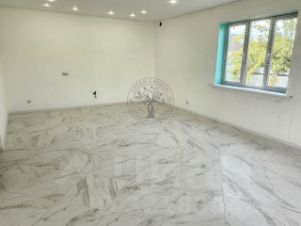 На полу керамогранит и ламинат, натяжной потолок, межкомнатные двери. Вам останется только поклеить обои или покрасить стены.
