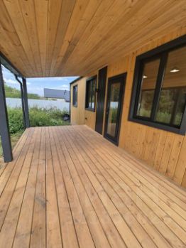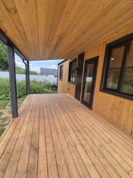 Дом: 83 м² (жилая площадь 65 м² + две просторные террасы 18 м² и 13 м²). Одна из террас — ваша будущая зона отдыха с живописным видом на лес.