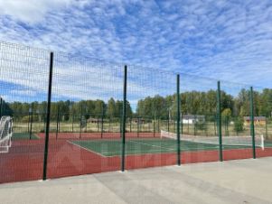Современная спортивная площадка с теннисным кордом, уличными тренажёрами.