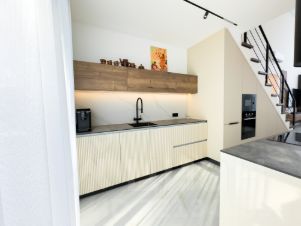 Дом состоит из 3 спален, двух санузлов, просторной гостиной с панорамным окном, который наполняет пространство солнечным светом, и кухней, оснащенной всем необходимым для приготовления любимых блюд, а так же рабочей зоной на втором этаже.