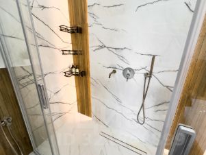 На территории участка располагается бассейн с террасой, а так же баня/сауна. К тому же, на территории есть парковочное место для нескольких автомобилей с навесом и хоз.блок.