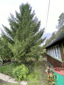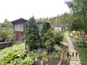 - Участок — ухоженный, плодовые и хвойные насаждения: ель, туи, сосны, яблоня