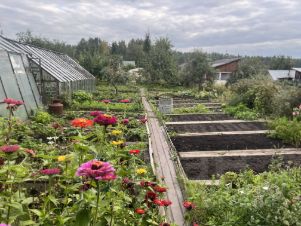 - Сад: жимолость, ирга, вишня, малина, ревень, крыжовник, смородина (чёрная и красная), облепиха (пара), груша, 3 яблони с очень вкусными сортами (на одной сразу два сорта).