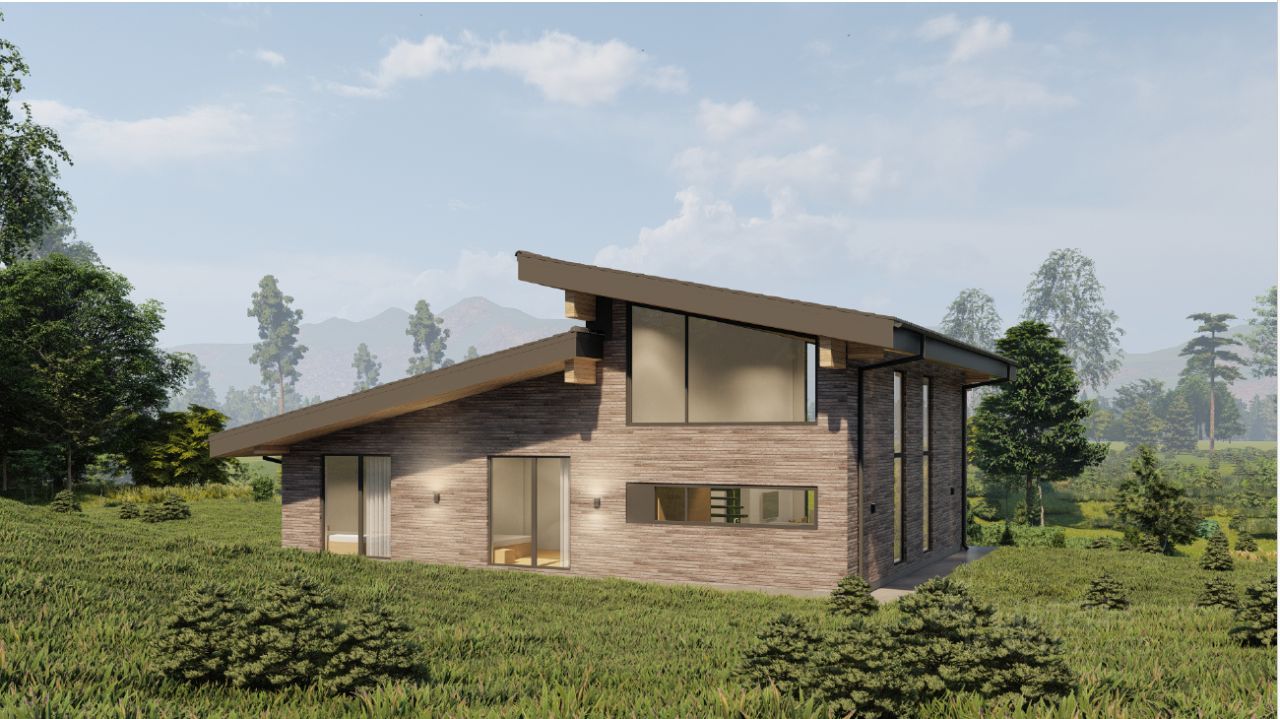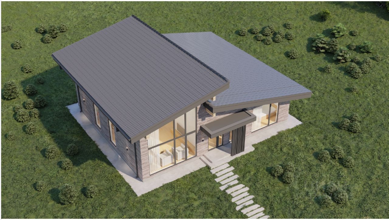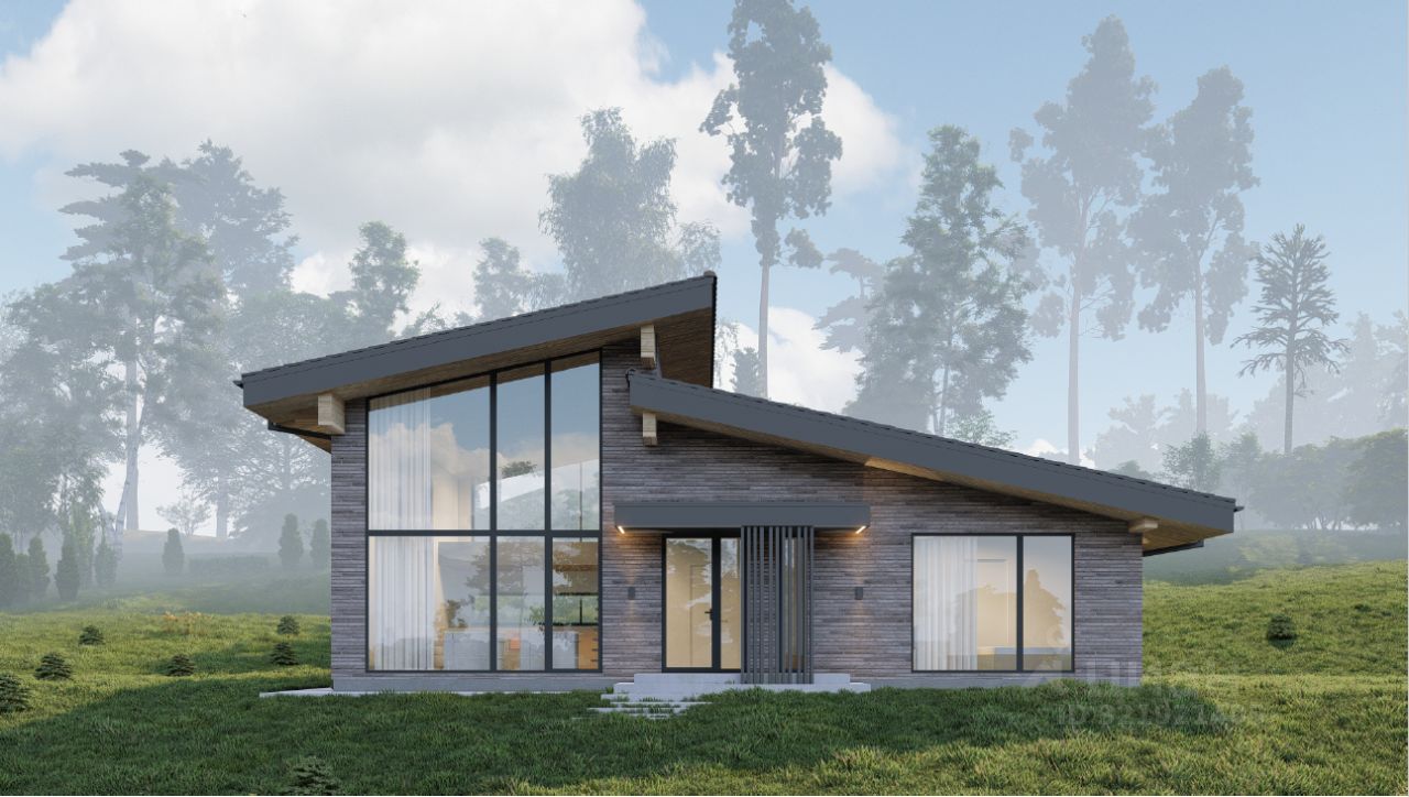 Планировочное решение дома представляет разделение на общую зону - просторное пространство кухни-гостиной с высоким потолком и панорамными окнами, и приватную зону, в которой располагаются помещения: блок мастер спальни с гардеробом и ванной комнатой, общий холл, две детские спальни и отдельная ванная. Так же в доме располагаются вспомогательные помещения: прихожая с гардеробом и котельная.