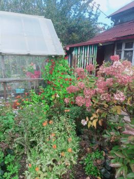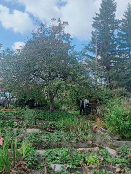 Сад на ЖБИ. В шаговой доступности вся инфраструктура города. На участке 2 теплицы ( одна большая, вторая маленькая), садовый домик, туалет на улице. Плодовые деревья ( 2 груши, 3 яблони, слива) , ягодные кустарники ( малина разных сортов, смородина черная, красная, белая, вишня, облепиха неколючая, шиповник, барбарис, калина) ,цветы.