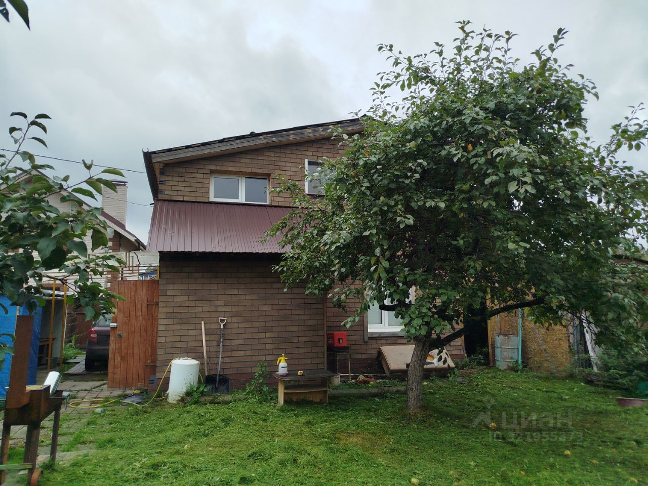 Продается дом, подходящий как для круглогодичного проживания, так и для использования в качестве дачи для отдыха. Первый этаж дома построен из кирпича, второй из бруса, весь дом утеплен минеральной ватой и обшит фасадной плиткой "Технониколь". На территории сада есть магазин, детская площадка, мусорные контейнеры, дороги зимой чистят. При въезде ворота открывающиеся дистанционно. В город и обратно ездят автобусы каждые 15 минут, от участка до остановки 7 минут ходьбы. На участке также есть баня, хоз постройки, плодоносные яблони, вишни. В доме установлен твердотопливный котёл, работающий как на дровах так и на угле, брикетах и др. топливе, дополнительно в котел установлен электрический тен. Развешаны алюминиевые радиаторы.