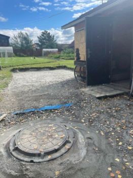 Комфортная бытовая инфраструктура уже организована: пробуренная скважина, проведена вода, установлен унитаз с бачком, рядом - стиральная машина и раковина, септик надёжно скрыт в земле - всё это обеспечивает полноценный санузел и возможность круглогодичного пребывания.