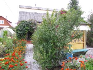 На садовом участке построены: 2-х этажный дом, баня, сарай для дров, беседка, два туалета, две теплицы, колодец.