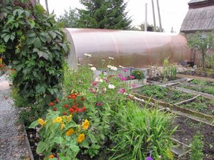 Всегда успешно вырастают овощи и фрукты. В большой теплице - помидоры и перцы, в малой - огурцы. Виктория: 4 грядки. Кабачки: 2 грядки. По грядке для: тыква, лук, чеснок, хрен, укроп, капуста, иногда картошка.