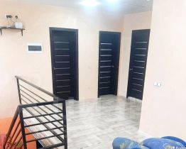 Дом 2-х этажный. На 1 эт прихожа, кухня-гостинная, котельная, санузел с ванной и комната для хозяйственных нужд. На 2 эт просторнный холл, 3 спальни и санузел с душевой кабиной.