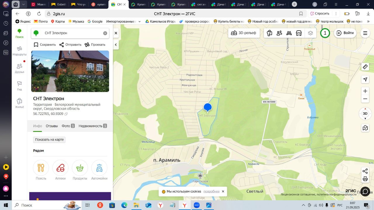 Продаётся дачный участок 8 соток в СНТ "Электрон" (граничит с лесом и селом Большебрусянское). Участок с плодовым садом: яблони, груши, слива, вишня, калина, смородина, клубника, земляника. Есть сарай для инструментов. Рядом вся инфраструктура: магазины, школа, детсад, аптеки, ж/д станция, кафе. СНТ с хорошим председателем, сборы небольшие
