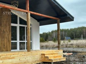 Внутри дома продуманная планировка: холл, две изолированные спальни. Центральное место занимает большая кухня-гостиная, объединённая с террасой. В доме один санузел.