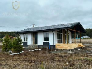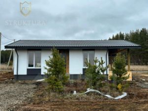 Внутри дома продуманная планировка: холл, две изолированные спальни. Центральное место занимает большая кухня-гостиная, объединённая с террасой. В доме один санузел.