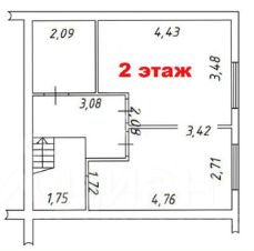 На первом этаже прихожая, просторная кухня-гостиная, санузел, котельная. Второй этаж - две спальни, санузел.