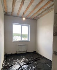 На стенах механизированная штукатурка(по "маякам"). По дому разведены электричество, водоснабжение и водоотведение. Натяжные потолки! Высота потолков 2.9м.