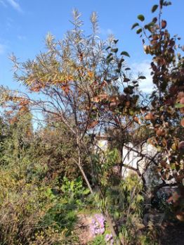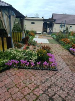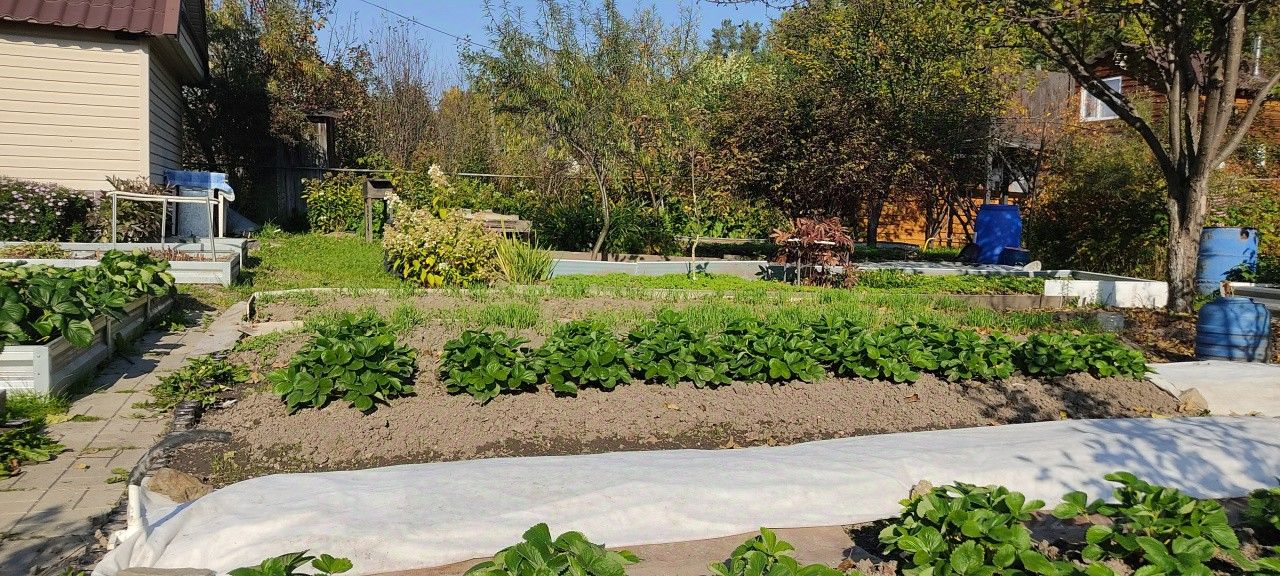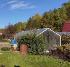 Земля на участке полностью разработана. Есть большая теплица. Растут ухоженные плодовые кустарники и деревья: яблони ("Уральска", "Серебряное копытце"), груши ("Поздняя, "Пермячка"), облепиха, слива, черноплодная рябина, жимолость, калина, вишня, смородина, малина. Очень много грядок с клубникой ("Гигантела", "Фестивальная", "Машенька"). Участок утопает в многолетних цветах.