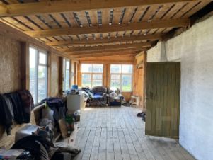 На участке расположен жилой дом общей площадью 60.2 кв. м. В доме одна комната, кухня и пристрой площадью 34.1 кв. м. Печное отопление. Крыша дома новая.