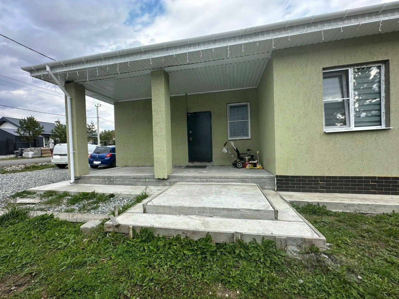 Дом: 106,3 кВ с террасой размером 6х3 , на участке есть хоз блок размером 32. Придомовая территория отсыпана шебнем для парковки на 4 авто.