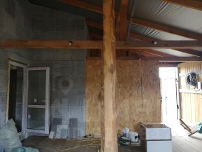 Готовые коммуникации: Электрическая проводка разведена по первому этажу. Канализационная труба выведена в выгребную яму. Рядом с домом есть собственная скважина — вода практически в доме!