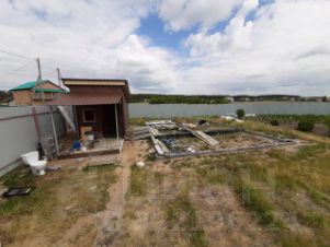 На участке установлен каркасный летний домик 4 *2.5 м., 1 комната + санузел, есть подпол.