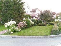 • На земельном участке газон, голубые ели, места для парковки 2-3 авто