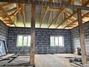 - Стены второго этажа выполнены из 300-го газоблока.
