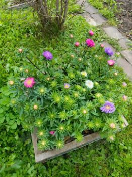 Фруктами и ягодами: Яблони (4 шт.), слива, алыча, вишня, черноплодная рябина, смородина трех видов (черная, красная, белая), калина, рябина.