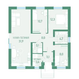 - 3 изолированные комнаты (8 / 10,7 / 12,3 м²)