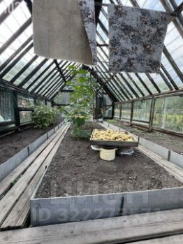 • Теплица: огромная, 72 м² (4х18 м) на металлическом каркасе со стеклом.