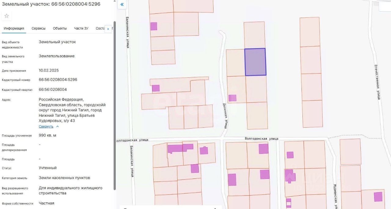 Земельный участок площадью 9,9 сотки расположен в Нижнем Тагиле, в микрорайоне Рудник имени 3-го Интернационала на улице Братьев Худояровых, 43. Участок имеет ровный и сухой рельеф, его назначение — для индивидуального жилищного строительства. Ключевым преимуществом является юридическая чистота: один собственник, земля приобретена напрямую у администрации, что гарантирует безопасность будущей сделки. Территория относится к новой нарезке в сложившемся жилом районе, где соседи уже проживают или ведут строительство, формируя комфортную и безопасную среду. К участку подведено электричество по улице, газ проходит по границе территории. Значительным преимуществом является наличие зрелых насаждений: здесь сохранились плодовые деревья и кустарники — смородина, тёрн, облепиха, а также декоративные виды — рябина, шиповник, боярышник и ель, что создает готовую основу для будущего сада или ландшафтного дизайна без необходимости начинать с нуля. В шаговой доступности находятся школа и магазин "Монетка", обеспечивая базовую инфраструктуру. Участок готов к осмотру в удобное для вас время.