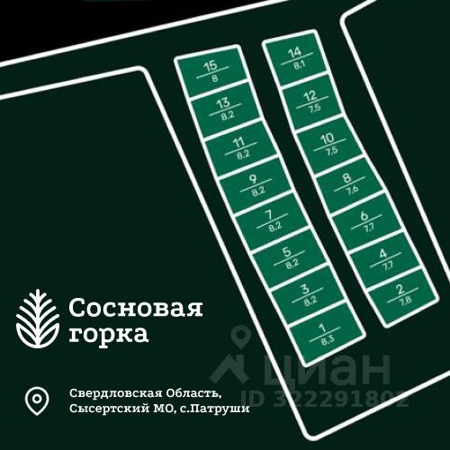 УЧАСТКИ ИЖС В 30 МИНУТАХ ОТ ЦЕНТРА ЕКАТЕРИНБУРГА в жилом квартале "Сосновая Горка", c. Патруши, Сысертский МО