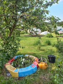 Насаждения: яблони, сливы, вишни, малина, крыжовник, смородина, клубника, черноплодная рябина, черемуха, ирга.