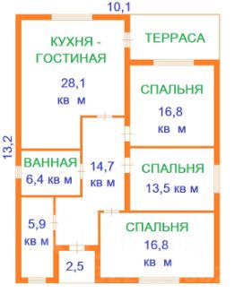 Просто огромная гостиная комната - 28,1 кв.м. с собственным выходом