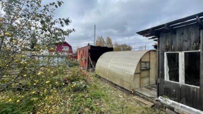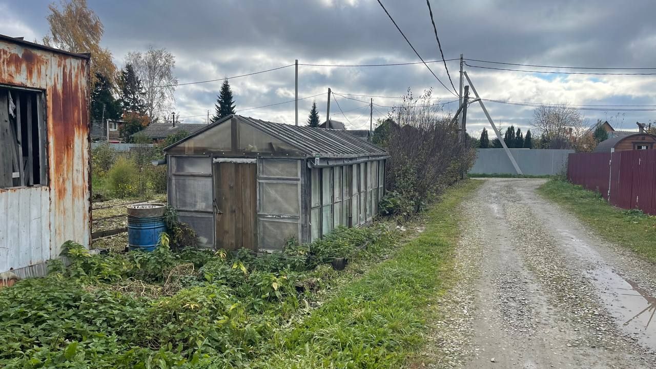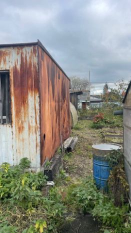 Есть 2 теплицы, бытовой вагончик, сарай и недостроенный домик.