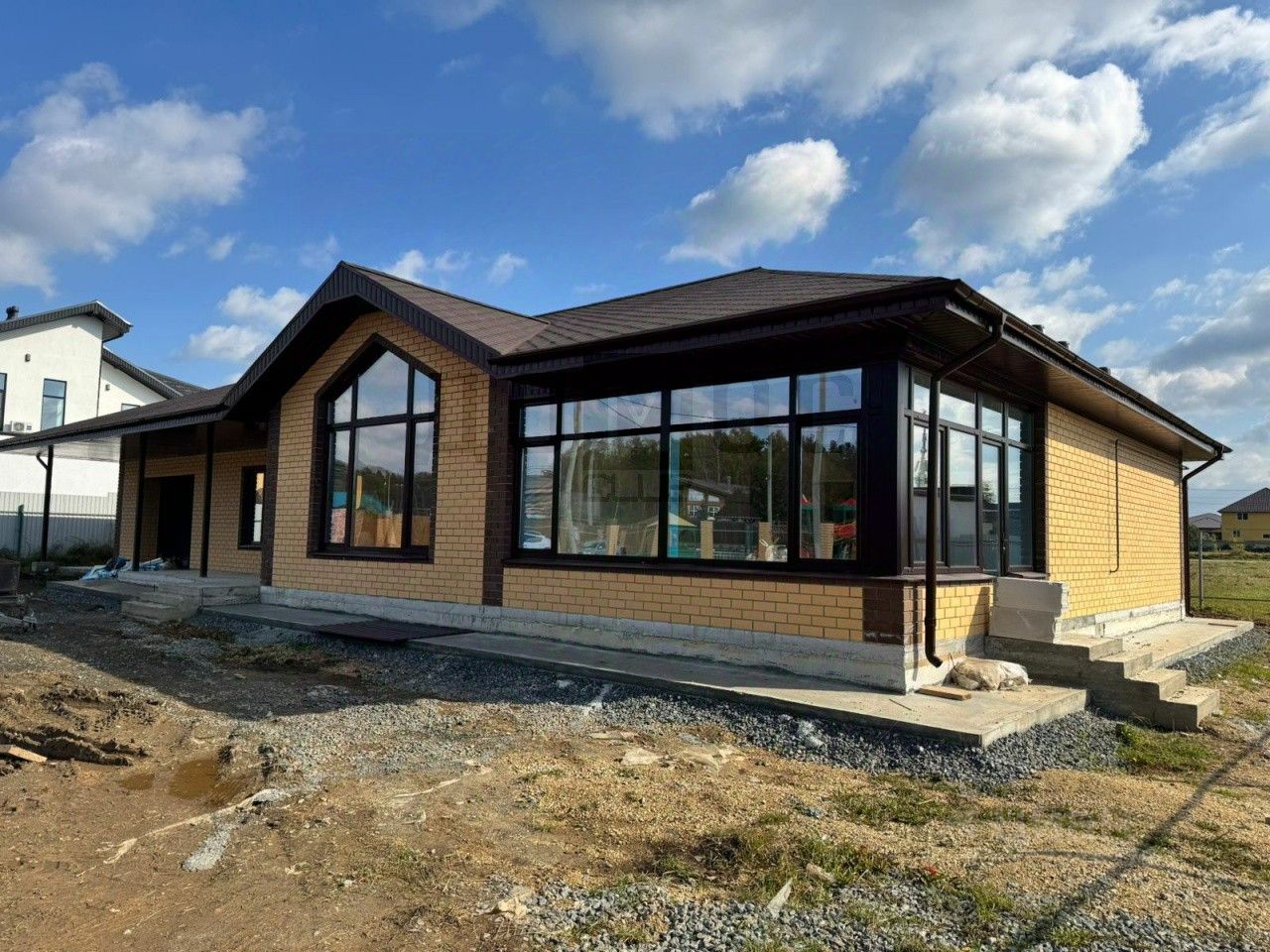 Отделка дома: в формате - White box, с полностью готовыми инженерными системами, установлены качественные витражные окна. Смонтирована водосточная система и вентиляция.