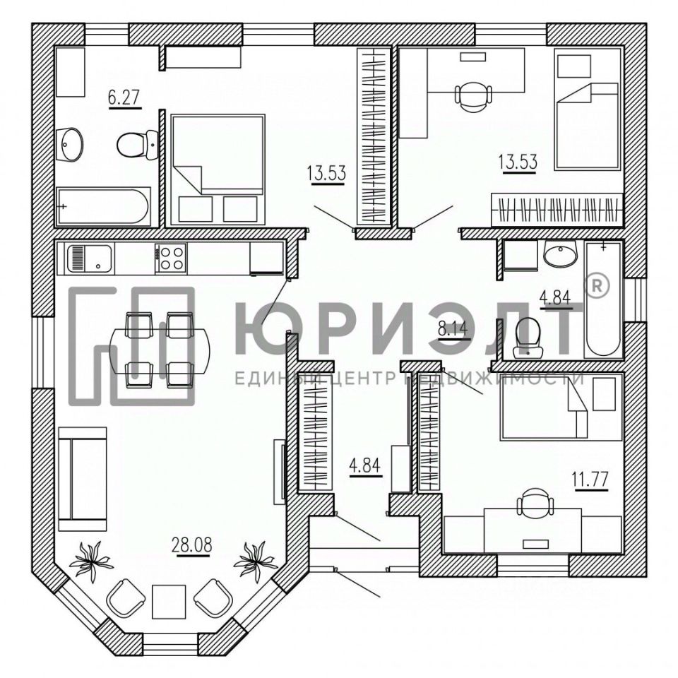 Одноэтажный дом 97.4 кв.м., участок 8.1 сот. Предчистовая отделка "white-box".