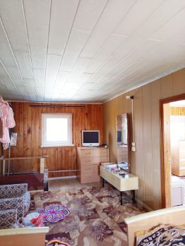Дом очень тёплый, 1 этаж построен из дерева, 2 этаж - деревянный каркас с утеплителем, обшит сайдингом. Фундамент ленточный. Внутри дом обшит деревянной рейкой, потолок пластиковыми панелями, на полу ламинат и линолеум. Во всем доме установлены батареи. Отопление водяное от газового котла (котел установлен в подсобном строении). Газоснабжение центральное.