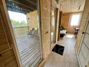 - Внутренняя отделка стен и потолка вагонкой штиль, на полу линолеум. Теплый пол и двухкамерные стеклопакеты. Выполнена вся электроразводка. Просторная терраса для вечерних посиделок.