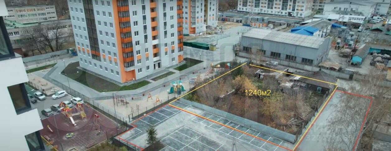 Участок 1240 м, кадастровый номер: 66:41:0501032:2 (земли населенных пунктов, зона Ж-5). Утверждённый ГПЗУ: разрешена многоэтажная застройка. Разделен на 2х собственников, продающих совместно.