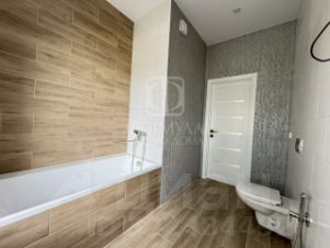 На полу керамогранит, на стенах обои, межкомнатные двери, натяжные потолки со светильниками, в санузлах плитка, установлена сантехника, в котельной котел, водонагреватель.