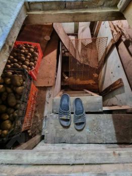 При входе во двор сделан огромный крытый двор. Из него выходы в гараж, баню и стайку.