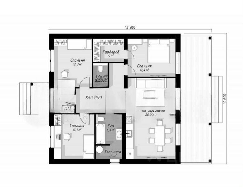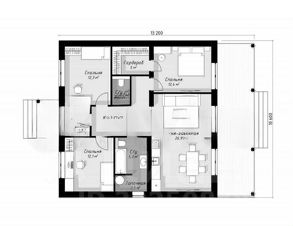 - Комнат: кухня-гостиная, 3 спальни, 2 с/у, 1 террасаКоммуникации посёлка: