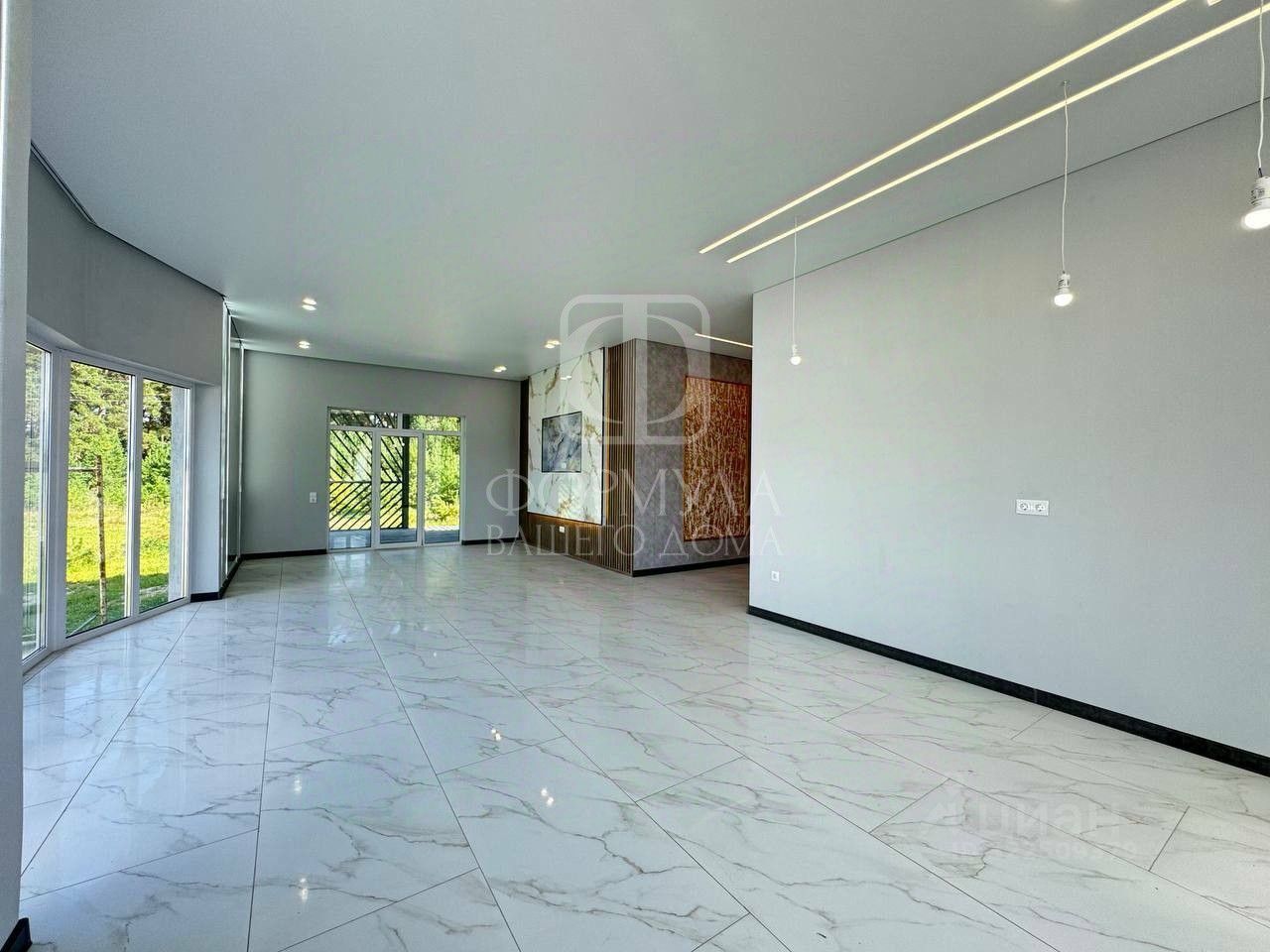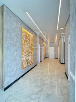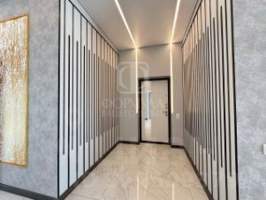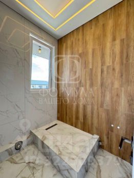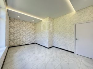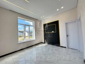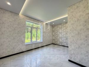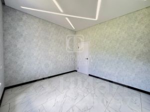 На полу керамогранит, на стенах обои, межкомнатные двери, натяжные потолки со светильниками, в санузлах плитка, в котельной котел, водонагреватель.