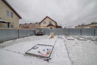 Участок облагорожен и разделён на несколько зон: в первой качели, песочница и газон - всё для развлечений и игр детей на свежем воздухе; вторая - это газон с посадками плодовых деревьев и кустарников; в третьей - всё, что нужно для барбекю и шашлыков; в четвёртой есть 4 грядки и место под будущую баню.