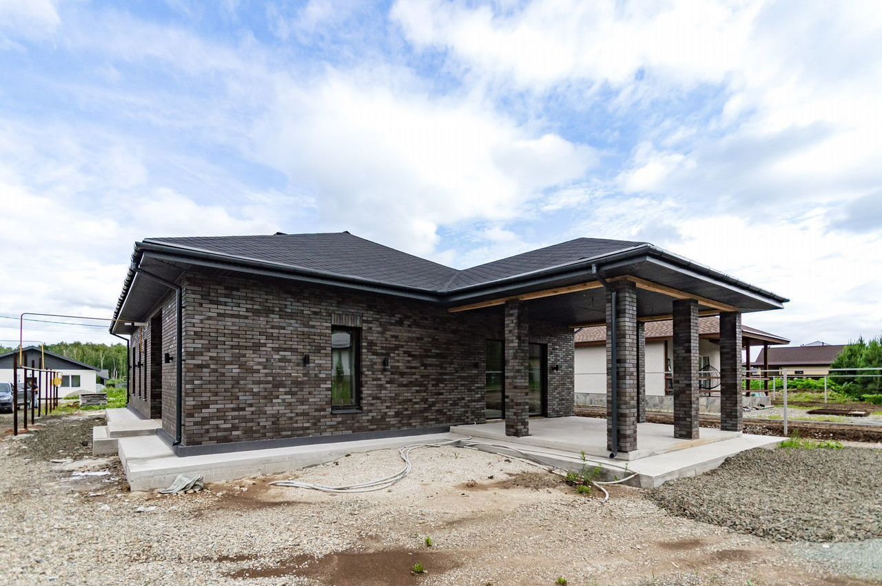 При строительстве используются качественные материалы: стены выполнены из газоблока, что обеспечивает отличные теплоизоляционные свойства, а облицовка клинкерным кирпичом придает дому долговечность и стильный внешний вид.