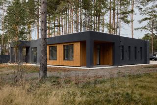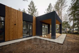 На участке сделан дренаж. Постарались сохранить максимальное количество сосен возле дома.
