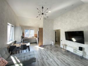 - Огромная кухня-гостиная со вторым светом — светлая и просторная, создаёт атмосферу свободы и тепла