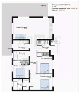 Дом из качественных материалов, с планировкой: три жилые комнаты , кухня-гостиная, 2 санузла+ гардеробная , терраса.