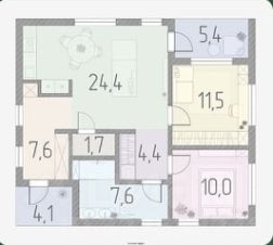 - кухня-гостиная + 2 спальни, котельная-постирочная, санузел, терраса ;