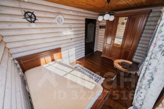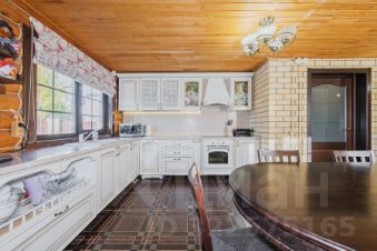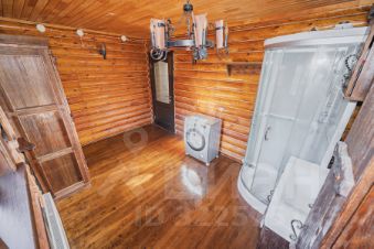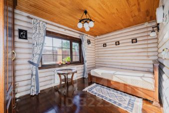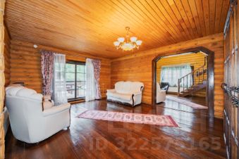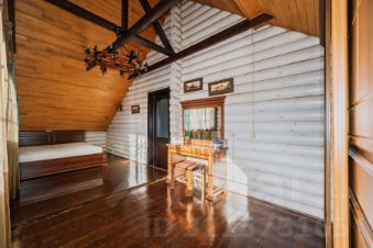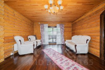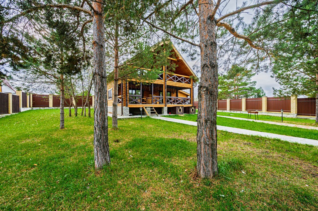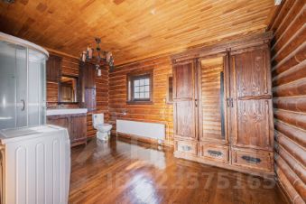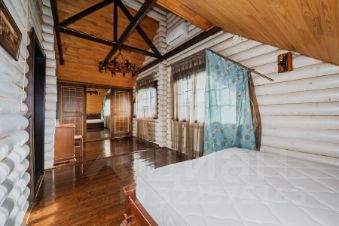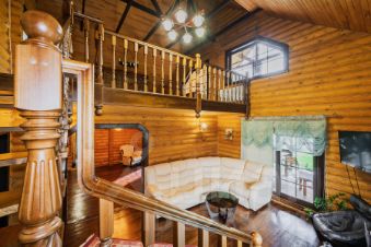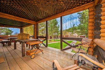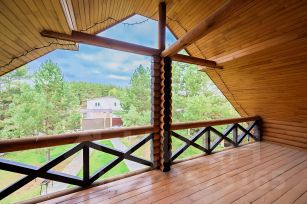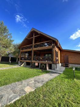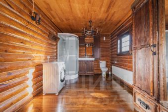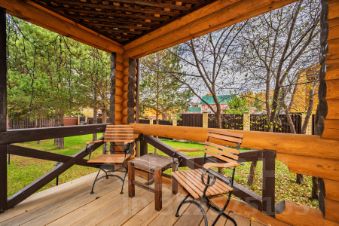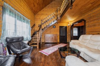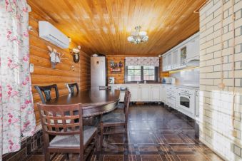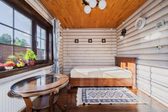 Дом построен в эко-стиле из оцилиндрованного бревна (сосна 26 см). Вся мебель в доме изготовлена из массива дерева.